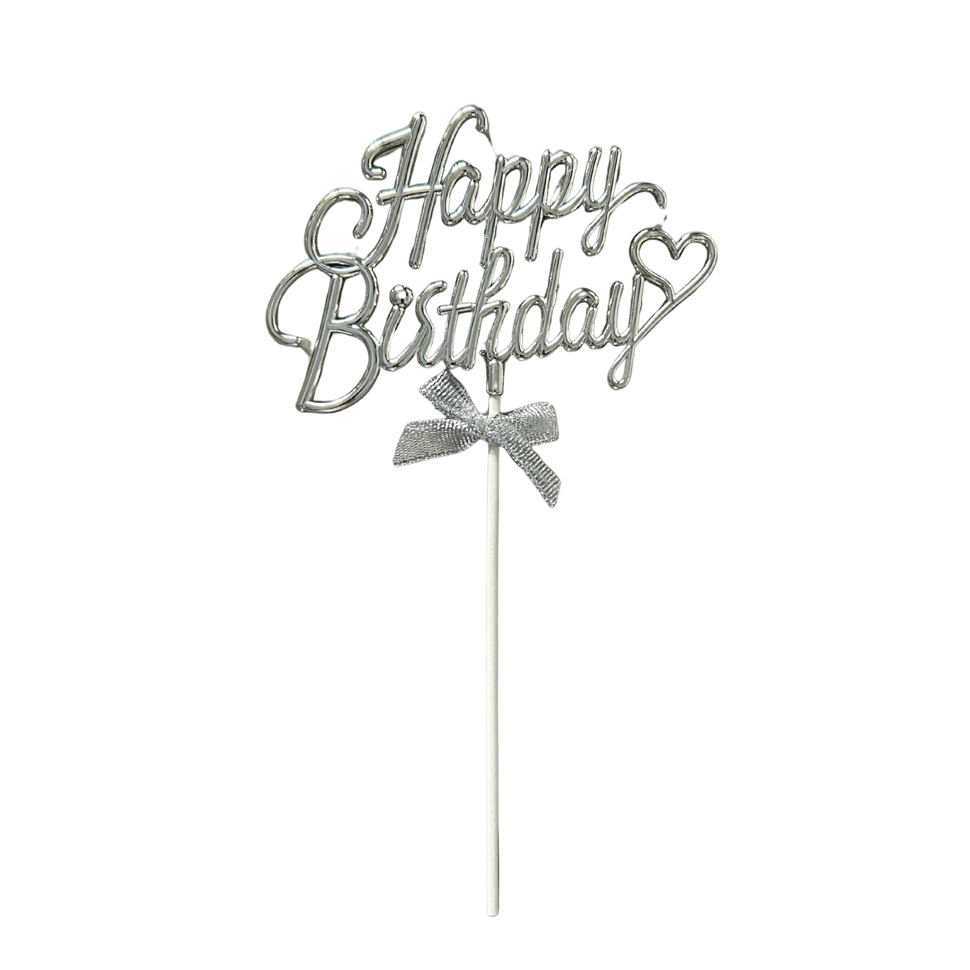 Happy Birthday Cake Topper -Silver